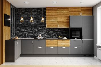 Удобство, универсальность и функциональность – это главные преимущества модели кухни «Моцарт». Гарнитур изготовлен из современного прочного материала и отделан с двух сторон эстетичным текстурированным пластиком.